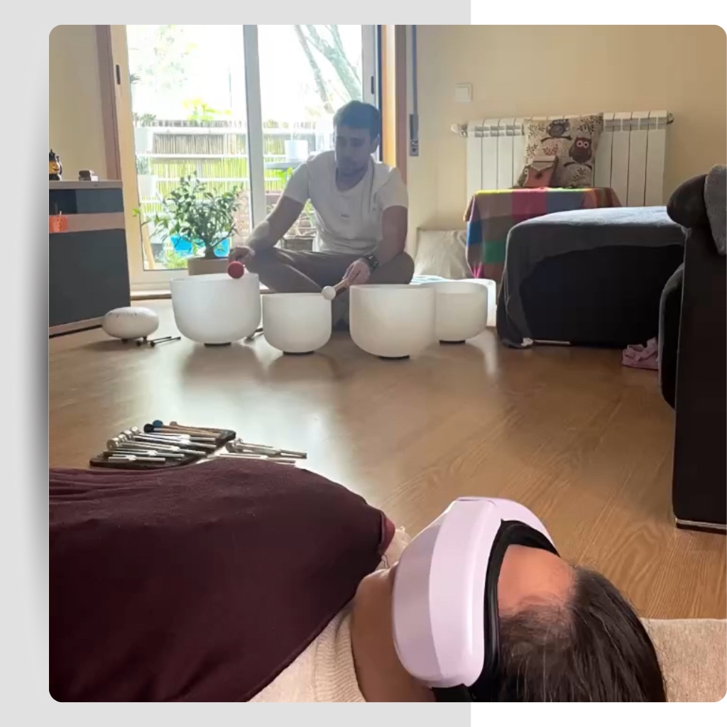 A Meditação Sonora utiliza sons e vibrações para induzir um estado profundo de relaxamento e paz. Durante a sessão, serás envolvido por frequências harmonizadoras criadas por instrumentos como taças de cristal, diapasões, pau de chuva e sinos Koshi. Esta prática proporciona uma experiência sensorial única, ajudando a acalmar a mente, revitalizar o corpo e promover um equilíbrio energético profundo, facilitando um estado de introspecção e bem-estar. Com este acompanhamento, irá aprender a observar as suas experiências com mais gentileza, desenvolvendo recursos para responder de forma mais equilibrada aos desafios diários.