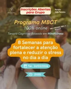 O MBCT é um programa de 8 semanas, clinicamente validado, que combina a prática de mindfulness com técnicas da terapia cognitiva. Através de exercícios simples e acessíveis, o MBCT ensina-lhe a cultivar a atenção plena no momento presente. Ao participar do programa MBCT, os participantes aprendem a cultivar uma atenção plena ao momento presente, desenvolvendo habilidades para observar pensamentos e emoções sem julgamento. Isso leva a uma maior consciência de padrões de pensamento prejudiciais e à capacidade de responder de maneira mais adaptativa a desafios da vida.