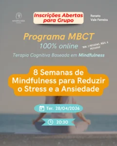O MBCT é um programa de 8 semanas, clinicamente validado, que reúne mindfulness, meditação guiada e elementos da terapia cognitiva. Foi desenvolvido para ajudar a reconhecer padrões mentais, como a ruminação, a preocupação excessiva e a autocrítica, que em momentos de maior dificuldade podem aumentar o sofrimento, ao mesmo tempo que ensina formas mais saudáveis de lhes responder.